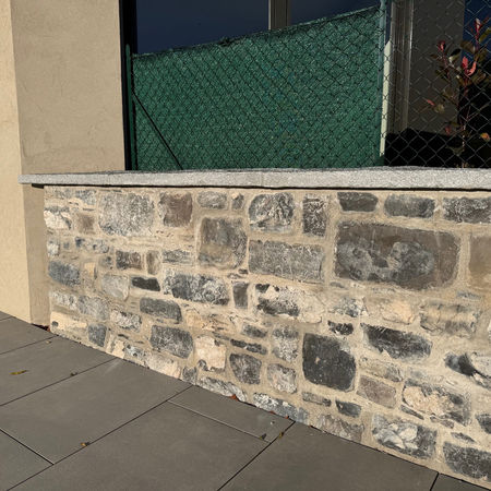 Formazione muri in sasso Caprino con posa alla romana a piombo senza rastrematura e stuccature fughe.